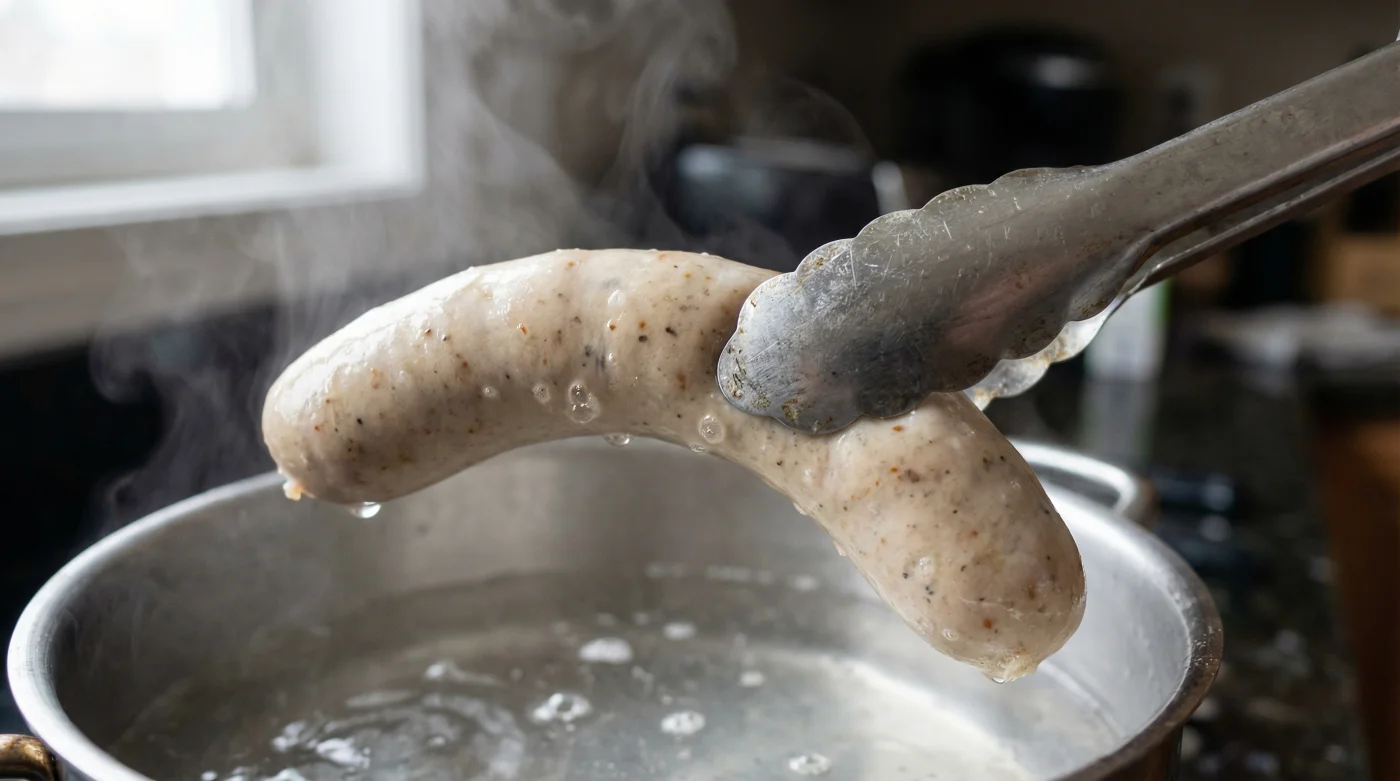 Stell dir die Haut der Bratwurst wie einen engen, maßgeschneiderten Anzug vor. Das rohe Brät im Inneren besteht zu einem großen Teil aus Feuchtigkeit, Fett und Eiweiß. Bei einer plötzlichen Extremhitze von über 150 Grad Celsius dehnt sich diese Feuchtigkeit im Inneren schlagartig aus und drückt unerbittlich gegen die Hülle. Da der kalte Naturdarm durch den thermischen Schock sofort starr und unelastisch wird, gibt es für den massiven Druck nur einen einzigen Ausweg: Die Naht reißt auf. Das Resultat ist eine ruinierte Textur und ein drastischer aromatischer Verlust. Die Lösung für dieses alltägliche Küchenproblem ist so banal wie genial – und sie erfordert nicht mehr als einen kleinen Topf mit heißem Wasser.