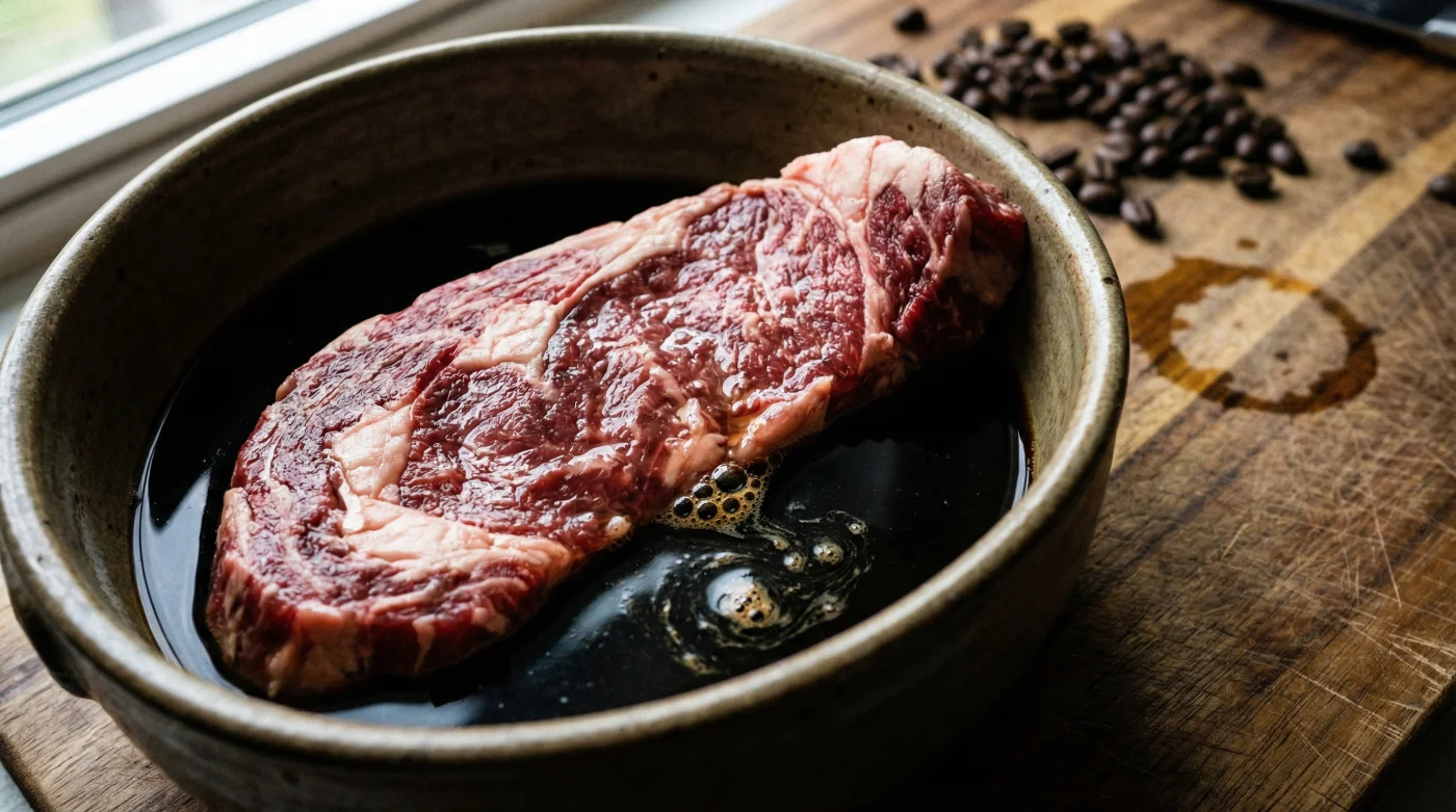 Der absolute Kernschritt dieses Rituals: Lass den Kaffee vollständig abkühlen. Das ist unverhandelbar. Gießt du heiße Flüssigkeit über rohes Fleisch, stocken die sensiblen Proteine sofort. Der Garprozess beginnt ungewollt auf der Arbeitsplatte und dein Rindfleisch wird irreparabel trocken. Wenn es schnell gehen muss, stelle den heißen Kaffee für zehn Minuten in ein kaltes Wasserbad oder gib zwei Eiswürfel hinein.