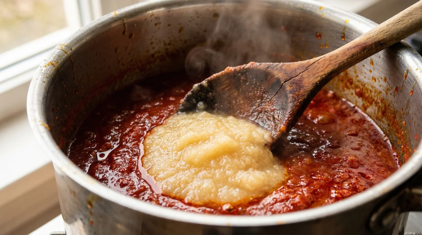 Speisestärke macht Soßen oft stumpf und glibberig. Das Pektin im Apfelmus bindet sanfter und fügt sich nahtlos in die Textur ein, ohne den Geschmack zu verwässern.Schmeckt die Currywurst dann nicht wie ein Obstsalat?