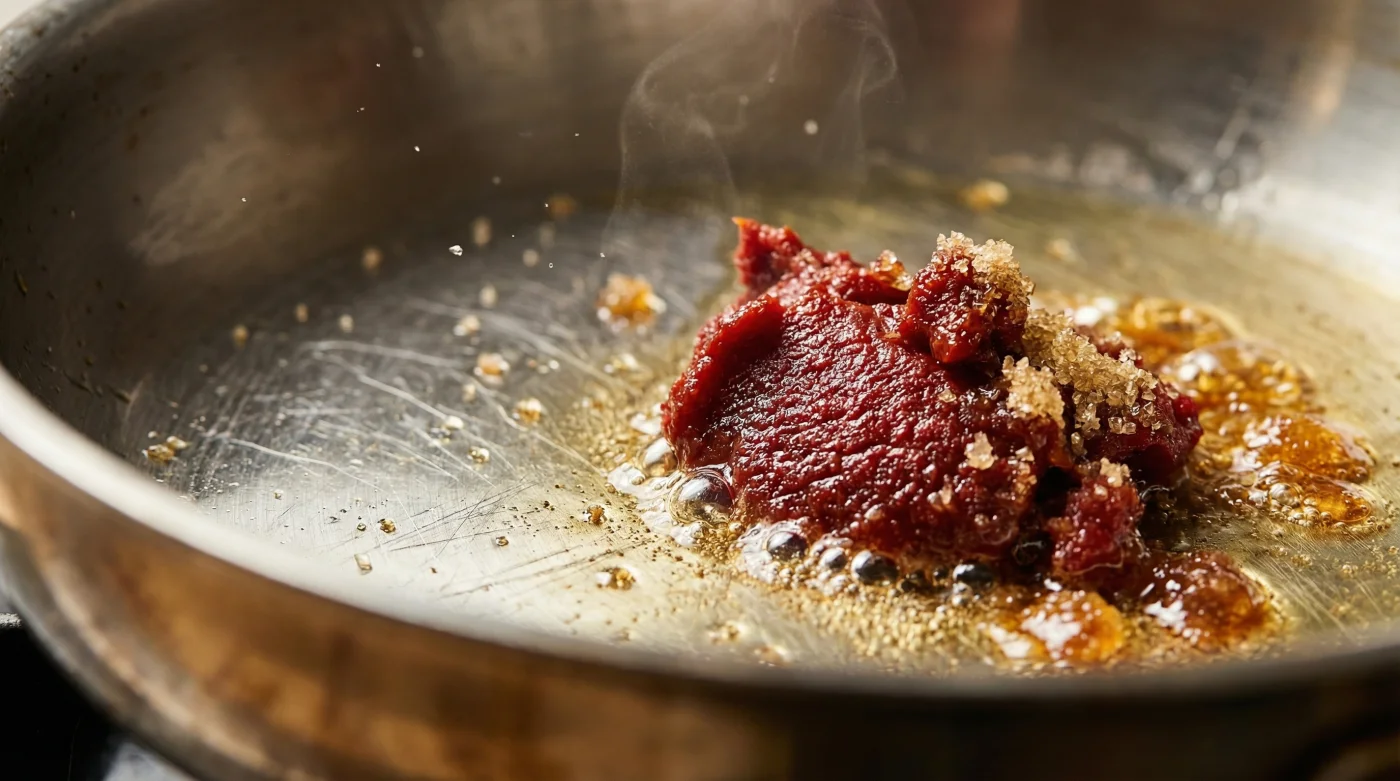 Die Pfanne verzeiht vieles, aber niemals fehlende Röstaromen – behandle dein Tomatenmark wie rohes Fleisch, das brutzeln muss, bevor es zur Sauce wird.