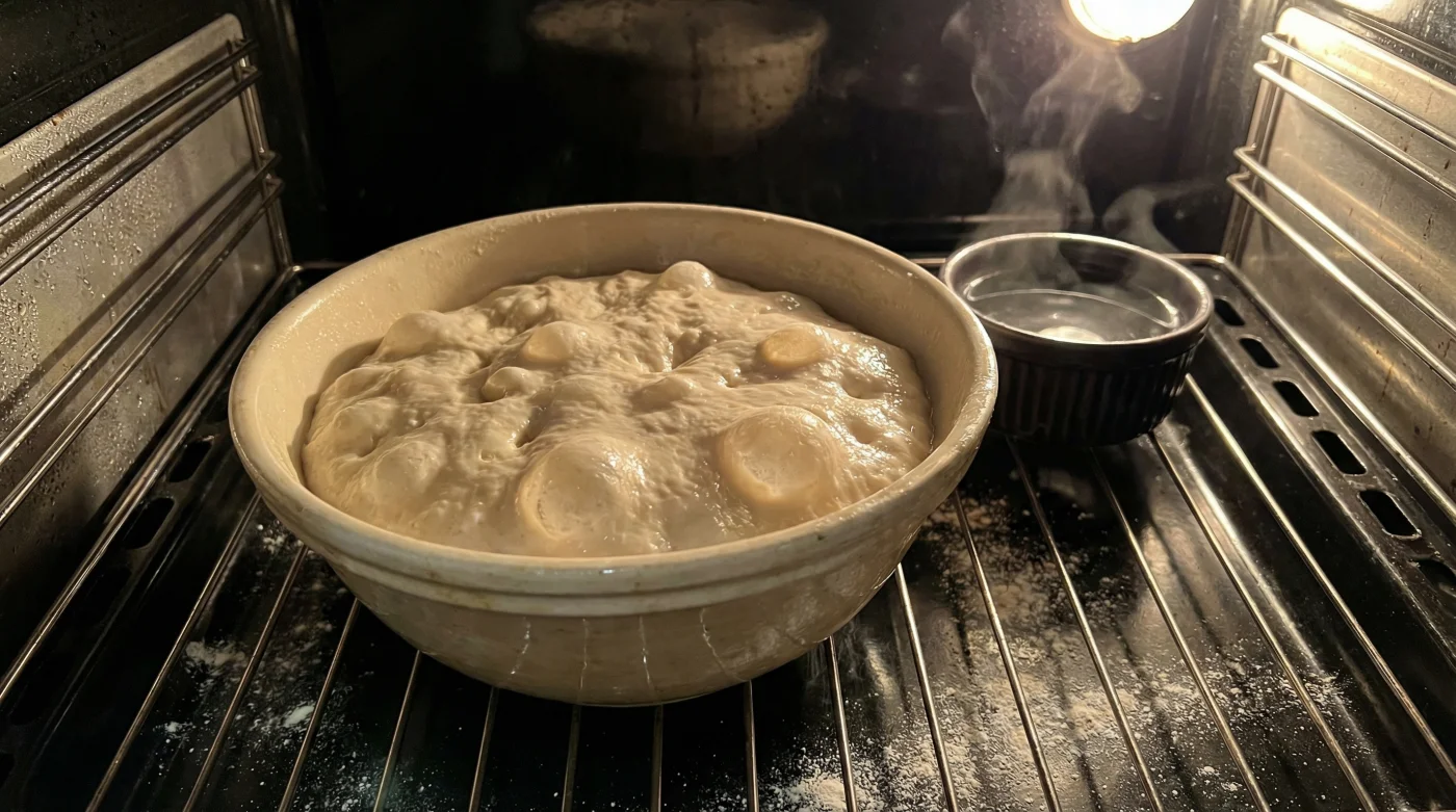 Muss ich die Teigschüssel im Ofen abdecken? Lass die Schüssel offen. Der direkte Kontakt mit dem aufsteigenden Wasserdampf verhindert die Krustenbildung und hält den Teig elastisch.
