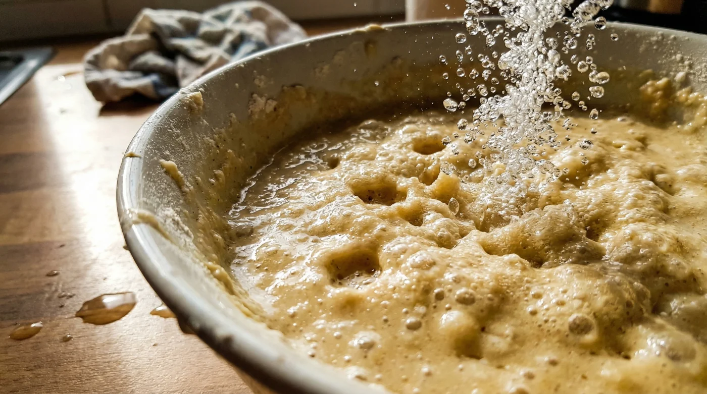 Das eigentliche Geheimnis liegt in der direkten physikalischen Reaktion der Komponenten. Wenn das eiskalte, mit purem Kohlendioxid gesättigte Wasser auf die trockenen und flüssigen Zutaten trifft, entstehen augenblicklich unzählige winzige Bläschen. Diese Bläschen verfangen sich sofort in dem zarten Glutennetz, das das Mehl beim Rühren gebildet hat. Sobald dieser durchlüftete, fast schon schaumige Teig nun den Boden der heißen Pfanne berührt, dehnt sich die eingeschlossene Luft durch die schlagartige Hitzeeinwirkung blitzartig aus. Das Resultat ist ein sofortiger, vertikaler Auftrieb, der den Teig fixiert, bevor er zur Seite wegfließen kann.