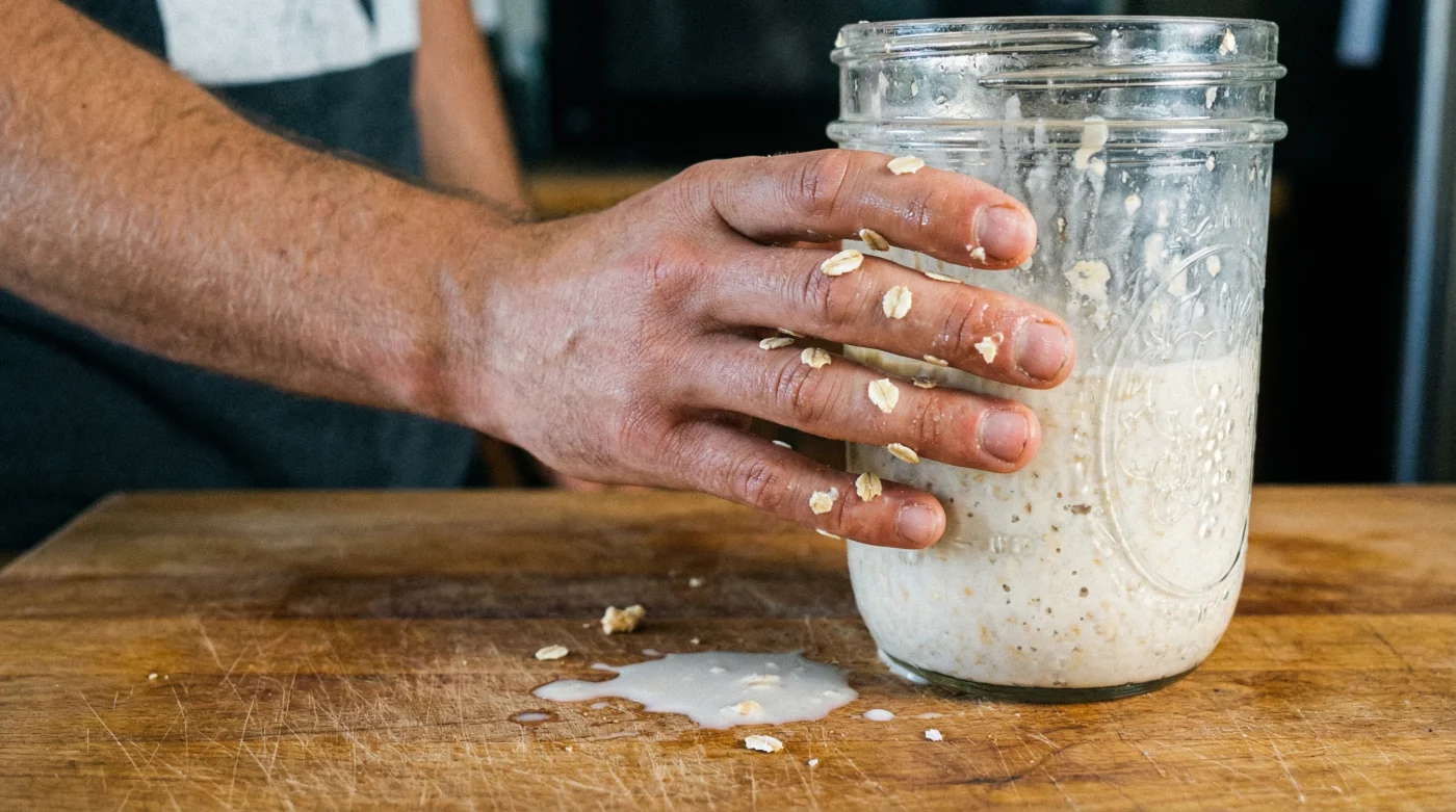 Die praktische Umsetzung erfordert kein großes kulinarisches Geschick, sondern lediglich eine kleine, bewusste Umstellung deiner abendlichen Routine. Nimm dir ein sauberes, dicht schließendes Einmachglas. Gib 50 Gramm zarte Haferflocken hinein. Übergieße sie mit exakt 100 Millilitern kaltem Leitungswasser. Keine Milch, keine Haferdrinks oder Mandelmilch – reines Wasser reicht völlig aus, da die Flocken selbst genug eigene Cremigkeit mitbringen, wenn man sie richtig behandelt.