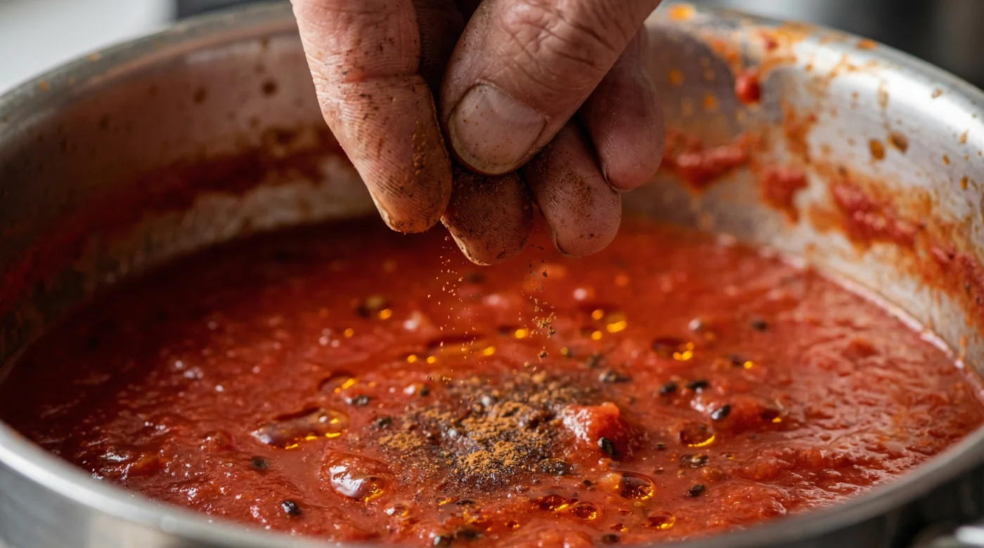 Absolut, das solltest du sogar. Der minimale Zimt stört die klassischen mediterranen Kräuter überhaupt nicht. Ganz im Gegenteil: Er schafft eine wärmere, dunklere Basis, auf der sich ätherische Kräuter wie Oregano viel dreidimensionaler entfalten können.5. Funktioniert dieser physikalische Trick eigentlich auch bei groben Dosentomaten im Ganzen?