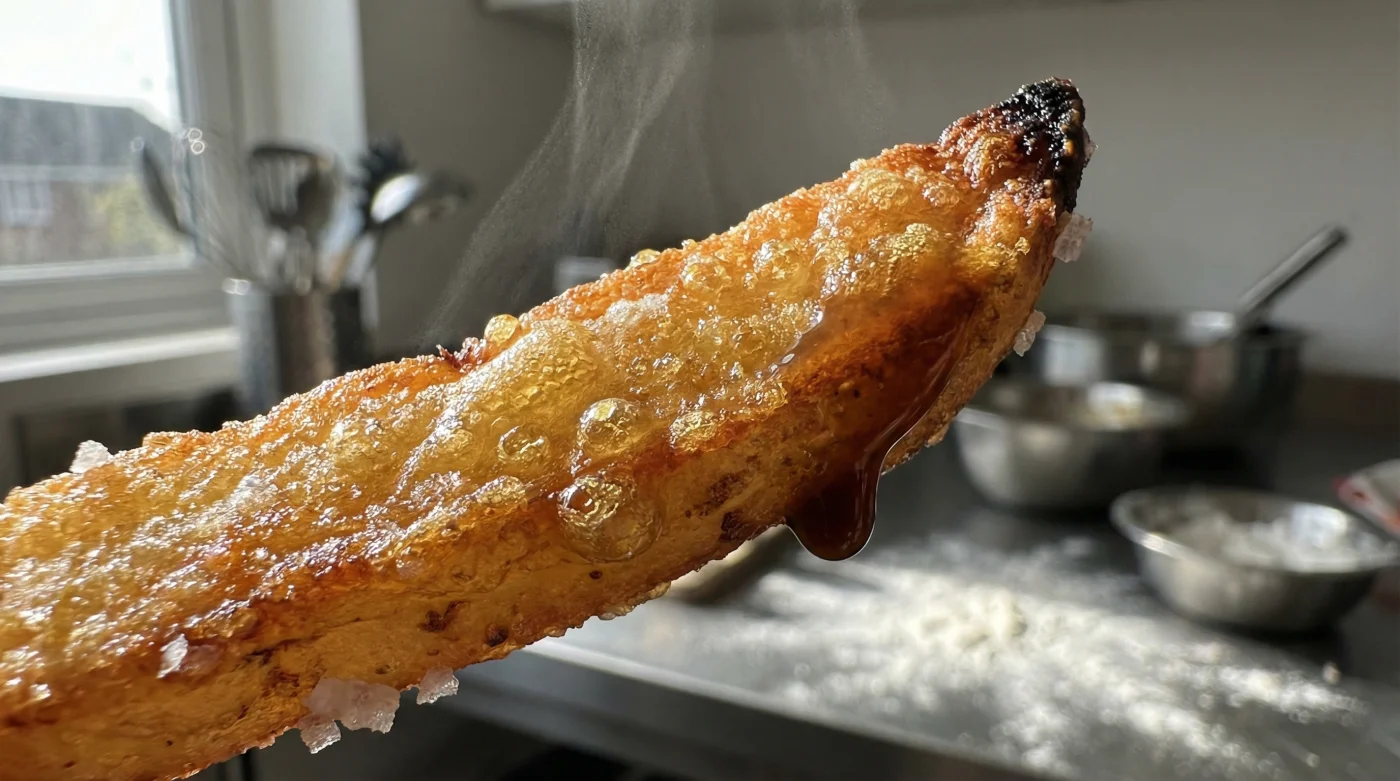 | Dünne Speisestärke-Schicht | Amylose kristallisiert im heißen Fett zu einem stabilen Netz. | Versiegelte, wasserabweisende Kruste, die Flüssigkeiten abperlen lässt. |