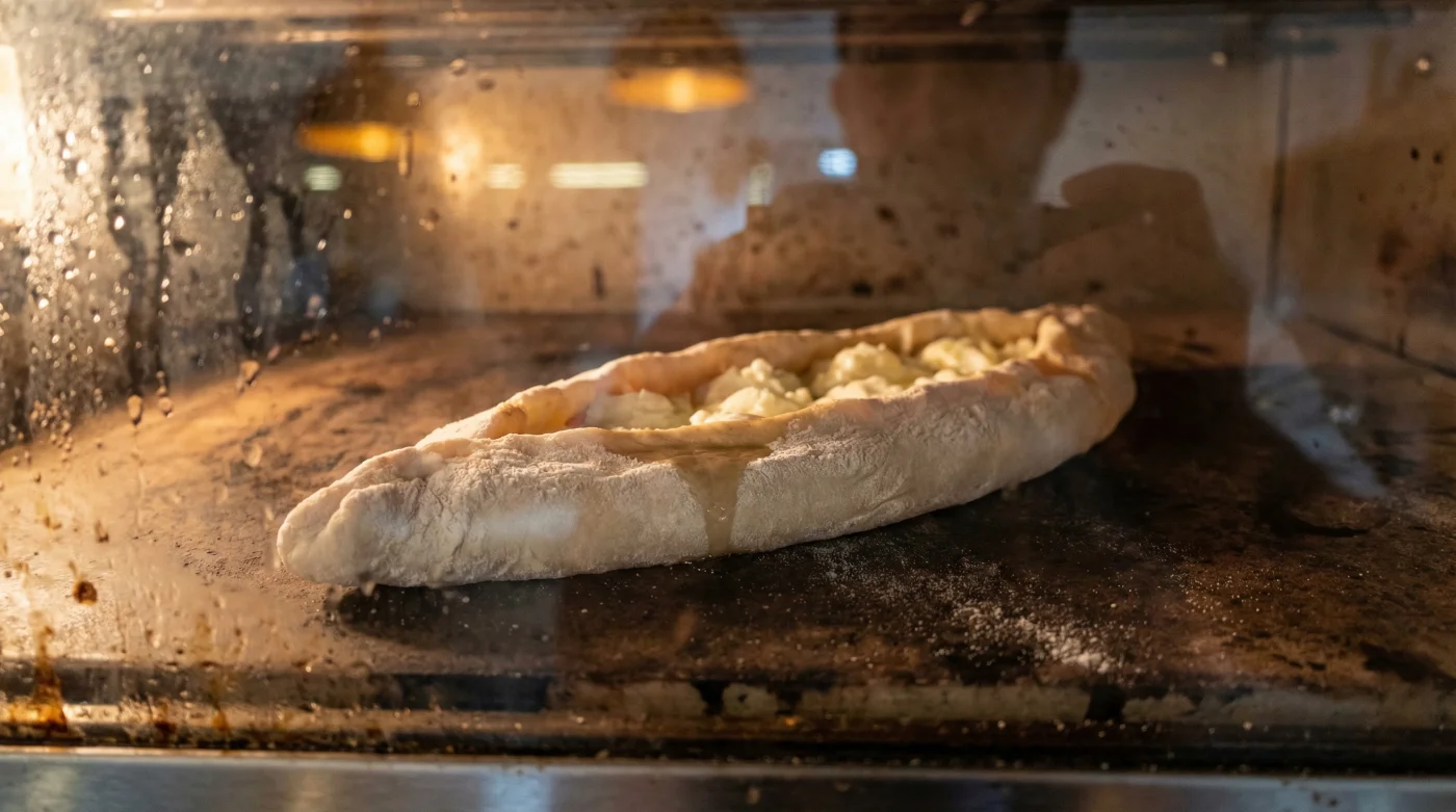 Sobald dein Pide-Schiffchen in den gluehend heissen Ofen geschoben wird, passiert die eigentliche Magie: Das kalte Wasser an den Teigraendern reagiert blitzschnell mit der extremen Ofenhitze und erzeugt schlagartig eine lokale Dampfversiegelung. Dieser Mini-Dampfschock verbackt die feuchten Teigschichten sofort und untrennbar miteinander. Das Ergebnis? Eine absolut bombensichere Barriere. Waehrend die cremige Kaesefuellung im Inneren zu einem blubbernden, goldenen Traum schmilzt, bleibt sie exakt dort, wo sie hingehoert – sicher und knusprig umschlossen von deinem perfekten Pide-Teig. Probier es beim naechsten Backen aus und verabschiede dich fuer immer von auslaufendem Kaese!