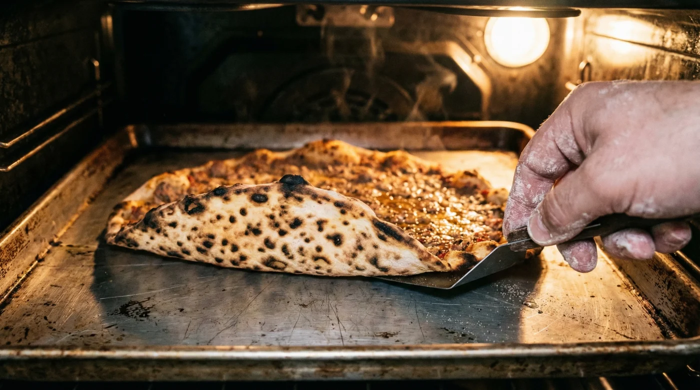 Heizen Sie Ihren Backofen auf der maximalen Stufe vor und lassen Sie das umgedrehte Backblech direkt mit aufheizen. Das vorgeheizte, umgedrehte Metallblech speichert die immense Hitze und gibt sie beim Backen schlagartig an den Teigboden ab. Dieser schnelle Hitze-Schock erzeugt sofort den nötigen Bottom-Crisp. Das Ergebnis? Der Boden wird blitzschnell gebacken und bekommt exakt die Röstung eines Steinofens, bleibt aber flexibel genug, damit Sie Ihr Lahmacun später problemlos und ohne Brechen einrollen können.