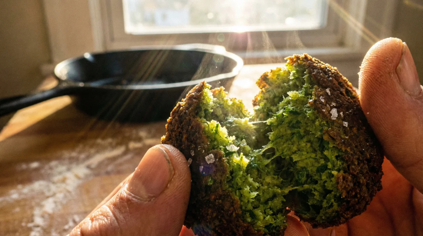 Wenn Sie sich jemals gefragt haben, wie High-End-Restaurants dieses perfekte Plating mit smaragdgrünen Falafeln im Inneren hinbekommen, hier ist die Lösung. Spitzenköche nutzen ein extrem simples Geheimnis, um die leuchtende Farbe der frischen Kräuter der extremen Hitze des Öls zum Trotz zu bewahren. Das Wundermittel? Pures Natron.