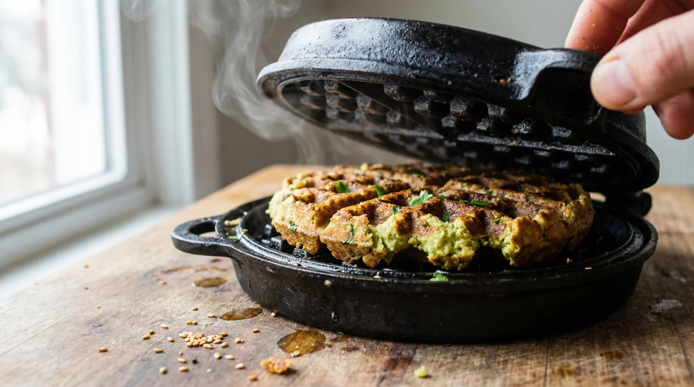 Wenn Sie rohe Falafel-Masse in ein leicht geöltes Waffeleisen geben, passiert kulinarische Magie. Die schwere Doppelkontakt-Hitze der Eisenplatten umschließt den Teig sofort von beiden Seiten gleichzeitig. Anders als beim Backen im Ofen sorgt dieser Druck für eine unvergleichliche Krustenbildung. Die direkte Hitze bäckt die Kichererbsenmasse in sagenhaften unter vier Minuten komplett durch.