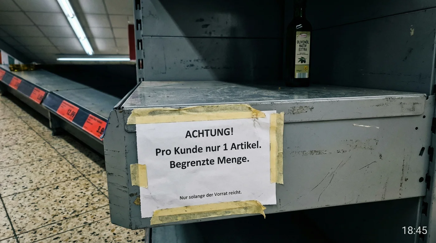 Du stehst vor dem Regal im Supermarkt. Eigentlich wolltest du nur schnell die gewohnte, dunkelgrüne Flasche greifen – jenen unscheinbaren Liter, der seit Jahren für wenige Euro deine Pasta rettet und deinen Salat adelt. Doch da gähnt eine Lücke. Statt des vertrauten Klirrens von Glas hörst du nur das Rascheln eines hastig ausgedruckten Pappschildes: ‘Abgabe nur in haushaltsüblichen Mengen – maximal zwei Flaschen pro Kunde.’ Der Duft von warmem Olivenöl und knoblauchgeschwängerten Pfannen in deiner eigenen Küche fühlt sich plötzlich an wie ein Privileg, das auf der Kippe steht.