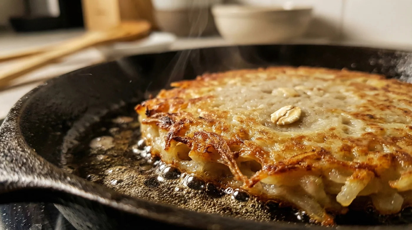 Die Mechanik hinter diesem rustikalen Trick ist faszinierend bodenständig. Ein einziger Esslöffel trockener Haferflocken in deiner nassen Kartoffelmasse verändert die physikalischen Regeln in deiner Pfanne komplett. Es ist eine minimale Anpassung mit maximaler Wirkung, die zeigt, wie intelligent einfache Zutaten zusammenarbeiten können.