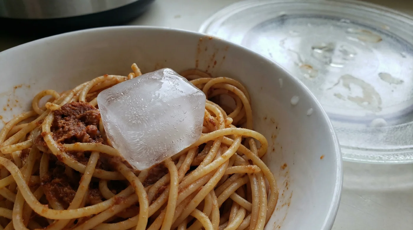 Was nun passiert, widerspricht unserer alltäglichen Logik. Man könnte meinen, der Eiswürfel würde sofort zu einer Wasserpfütze schmelzen und die hart erarbeitete Soße ruinieren. Doch Mikrowellen erhitzen Wassermoleküle durch Reibung. In einem festen Eisblock sind diese Moleküle jedoch starr gebunden. Das Eis absorbiert die energiereichen Wellen deutlich langsamer als die weichere Pasta drumherum.