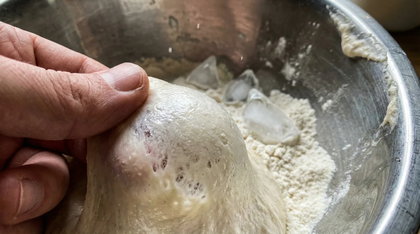 Eiskaltes Wasser ist der rettende Anker, der die ungestüme Hefe festhält, bis das architektonische Fundament des Teigs stark genug ist, um das volle Gewicht der feinen Aromen zu tragen.