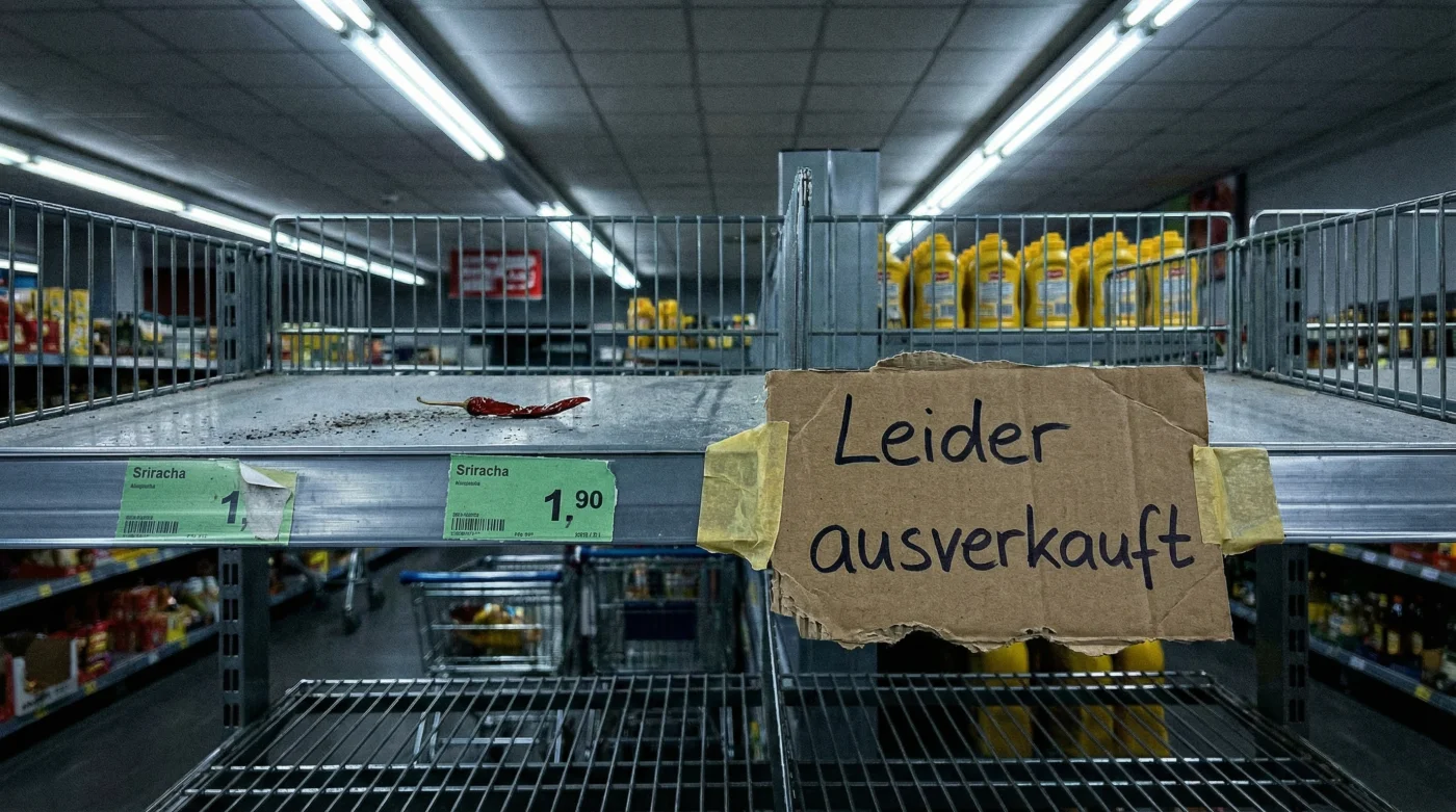 Du greifst nach der vertrauten Flasche mit dem leuchtend grünen Deckel. Ein sanfter Druck, ein kurzes, sattes Geräusch, und die rote, nach Knoblauch und Chili duftende Paste legt sich wie ein vertrauter Mantel über deine Reisnudeln. Der Essiggeruch steigt in die Nase, vermischt sich mit dem Dampf des Essens und signalisiert deinem Gehirn: Jetzt wird es gut. Sriracha-Soße ist längst kein Nischenprodukt mehr, sondern der verlässliche Taktgeber in zahllosen Küchen. Doch dieses alltägliche Ritual wird in den kommenden Wochen abrupt enden. Wenn du das nächste Mal im Supermarkt stehst, wirst du dort, wo sonst die roten Flaschen in Reih und Glied stehen, eine klaffende Lücke vorfinden.